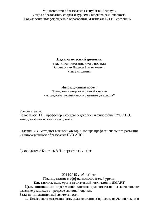 Педагогический Дневник Участника Инновационного Проекта
